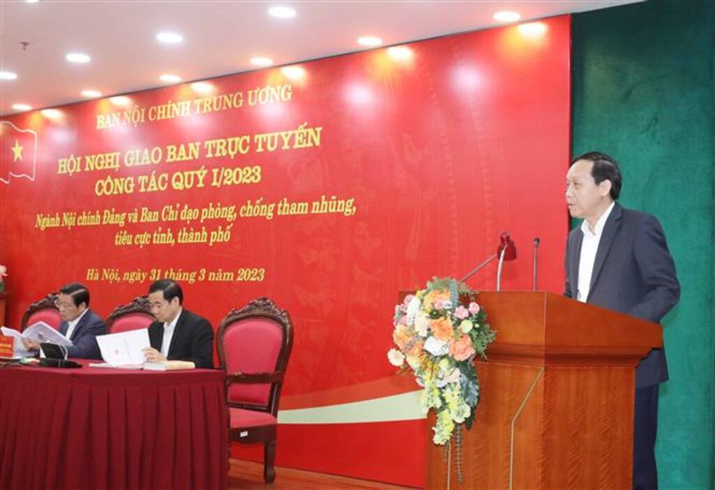 TTXVN - Ngày 31/3, Ban Nội chính Trung ương tổ chức Hội nghị giao ban trực tuyến công tác quý I/2023 ngành Nội chính Đảng và Ban Chỉ đạo phòng, chống tham nhũng, tiêu cực các tỉnh, thành phố.