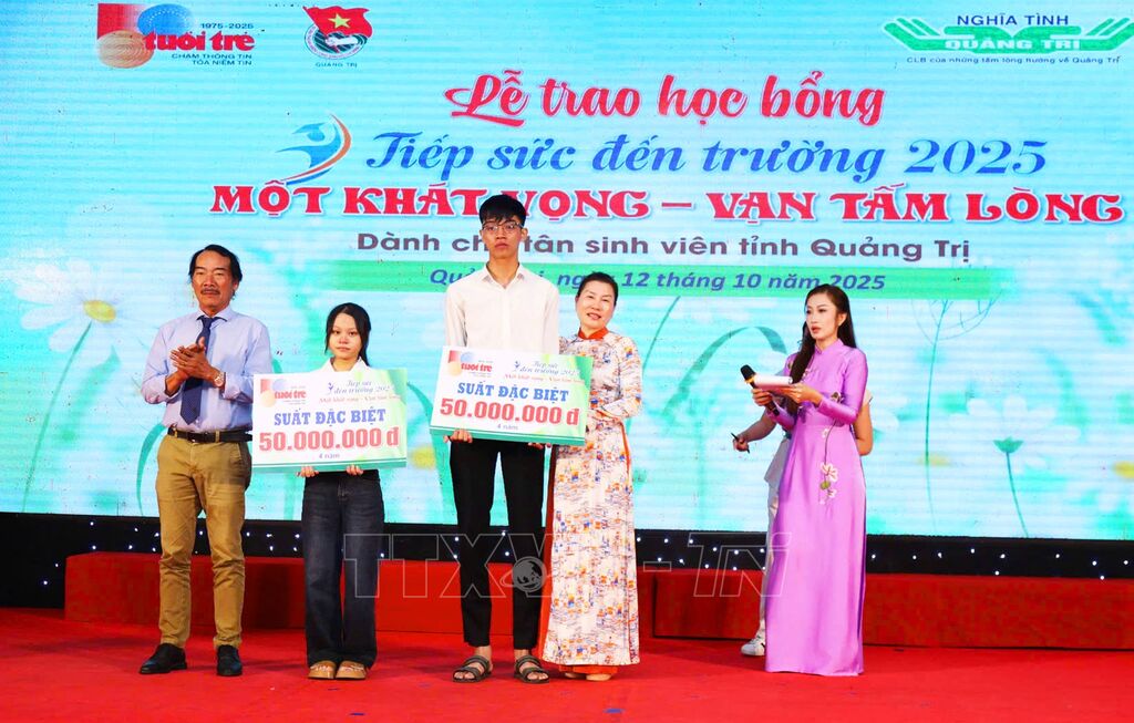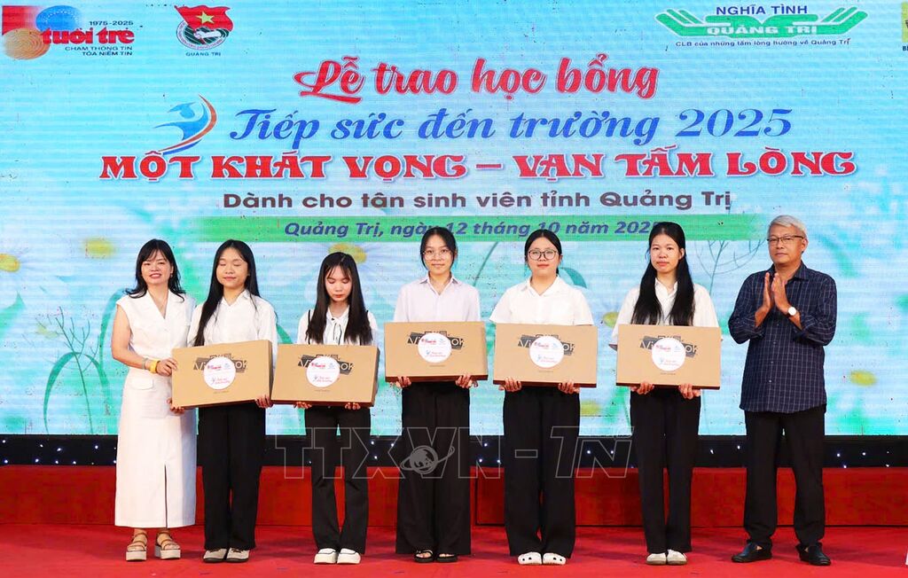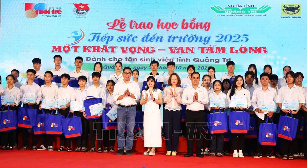Ngày 12/10, tại phường Nam Đông Hà, tỉnh Quảng Trị, báo Tuổi Trẻ phối hợp với Tỉnh đoàn Quảng Trị tổ chức Lễ trao học bổng “Tiếp sức đến trường” với chủ đề “Một khát vọng - Vạn tấm lòng” dành cho tân sinh viên có hoàn cảnh khó khăn, giàu nghị lực của tỉnh Quảng Trị.