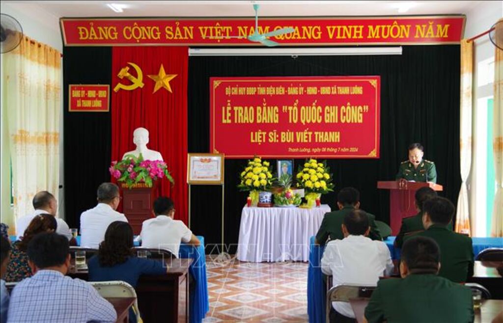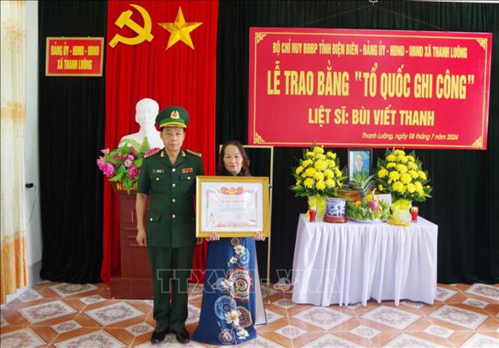 Ngày 8/7, Đảng ủy, Bộ Chỉ huy Bộ đội Biên phòng tỉnh Điện Biên phối hợp với cấp ủy, chính quyền địa phương tổ chức Lễ công bố quyết định và trao bằng “Tổ quốc ghi công” cho gia đình liệt sỹ Bùi Viết Thanh, nguyên Trung tá quân nhân chuyên nghiệp, nguyên Phó đội trưởng vũ trang, Đồn Biên phòng Leng Su Sìn, Bộ đội Biên phòng tỉnh Điện Biên.