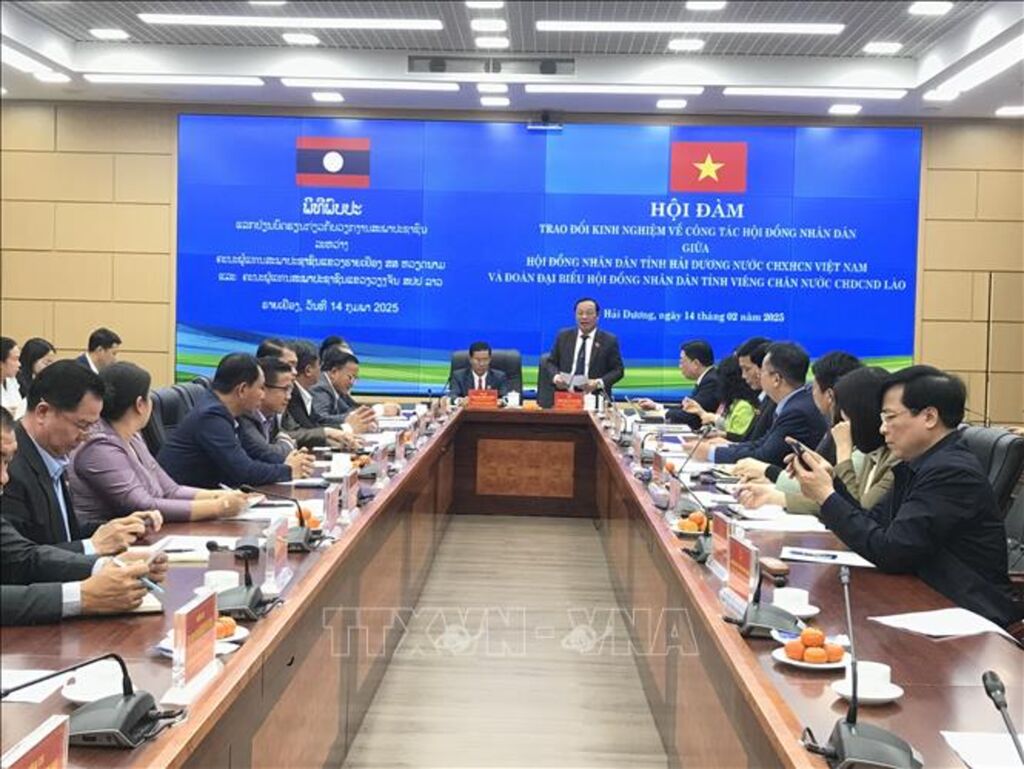 Chiều 14/2, tại thành phố Hải Dương, tỉnh Hải Dương đã tổ chức Hội đàm trao đổi kinh nghiệm về công tác HĐND giữa HĐND tỉnh và Đoàn đại biểu HĐND tỉnh Viêng Chăn (Lào) do Phó Bí thư Tỉnh ủy, Chủ tịch HĐND tỉnh Viêng Chăn Phết Là Vằn làm Trưởng đoàn.