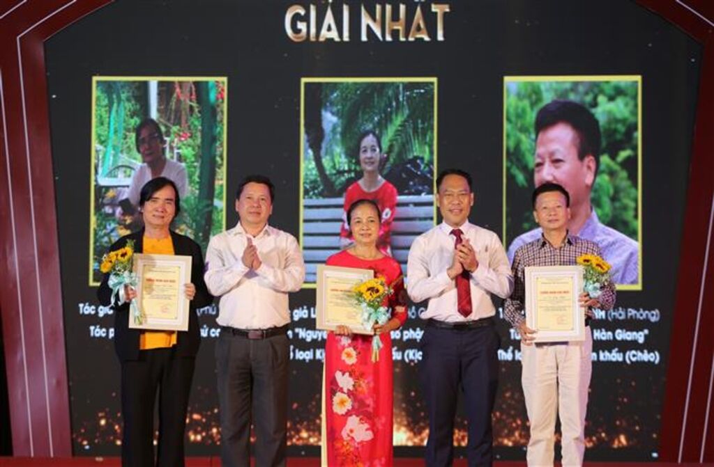 Ban tổ chức đã trao ba giải Nhất, ba giải Nhì, ba giải Ba cho các tác giả xuất sắc nhất. Ba giải Nhất gồm ca khúc Tuyết giang sử ca của tác giả Huỳnh Tấn Phát (Phú Yên); Kịch bản kịch nói Nguyễn Bỉnh Khiêm- số phận và sứ mệnh của tác giả Lê Thị Thu Hạnh (Thành phố Hồ Chí Minh) và tác kịch bản chèo Trở về Hàn Giang của tác giả Vũ Huy Thành (Hải Phòng)./.