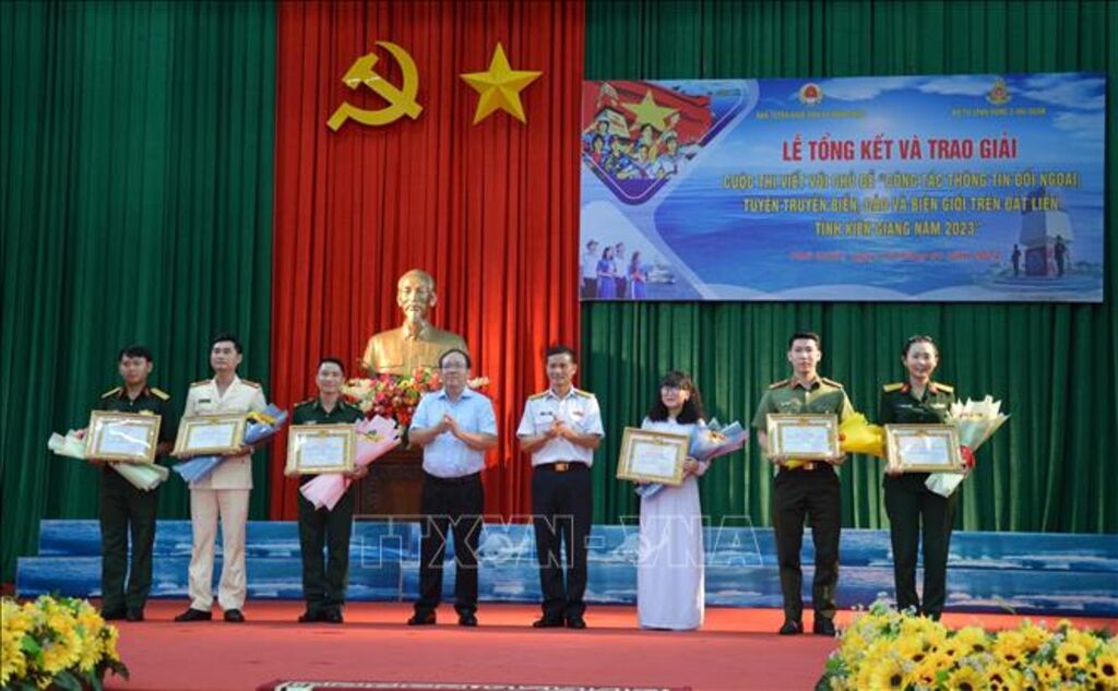TTXVN - Chiều 16/1, tại thành phố Phú Quốc, Ban Tuyên giáo Tỉnh ủy Kiên Giang phối hợp với Bộ Tư lệnh Vùng 5 Hải quân tổ chức Lễ tổng kết và trao giải Cuộc thi viết với chủ đề “Công tác thông tin đối ngoại; tuyên truyền biển, đảo và biên giới trên đất liền tỉnh Kiên Giang năm 2023”.