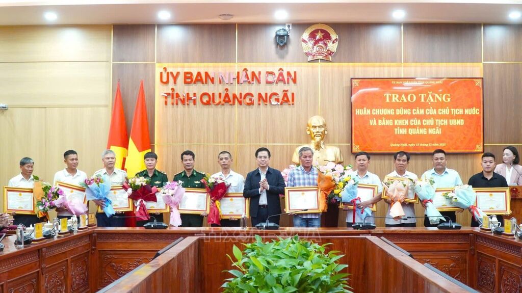 Chiều 15/12, Chủ tịch Ủy ban nhân dân (UBND) tỉnh Quảng Ngãi Nguyễn Hoàng Giang đã chủ trì Lễ trao tặng Huân chương Dũng cảm của Chủ tịch nước và Bằng khen của Chủ tịch UBND tỉnh cho các tập thể, cá nhân tiêu biểu trong công tác ứng phó bão số 13.