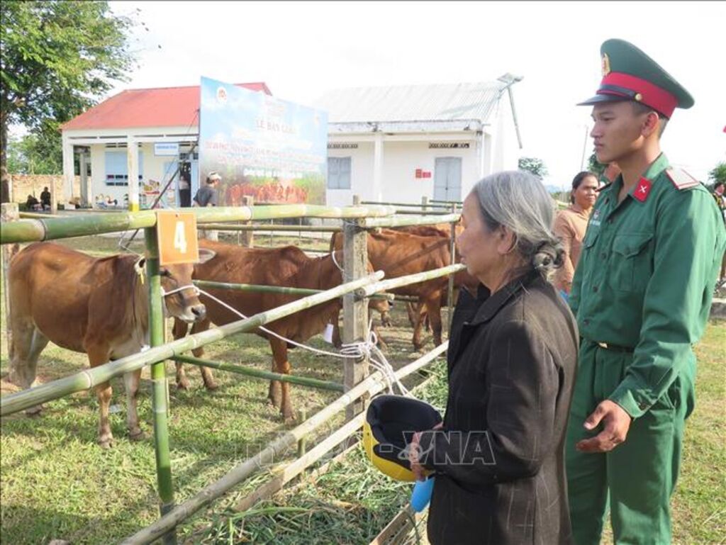 Tại buổi lễ, các hộ dân thực hiện bốc thăm ngẫu nhiên để nhận cặp bò của gia đình mình. Mỗi cặp bò được trao tặng sẽ là sinh kế cho bà con nhân dân phát triển sản xuất, tăng thêm thu nhập, thoát nghèo bền vững, nâng cao chất lượng cuộc sống. Cùng với đó, bà con cũng được Sư đoàn 10 hỗ trợ kỹ thuật chăm sóc bò giống sinh sản, cách phòng trừ và điều trị các loại bệnh thường xuyên gặp trên bò như lở mồm long móng, tụ huyết trùng,...
