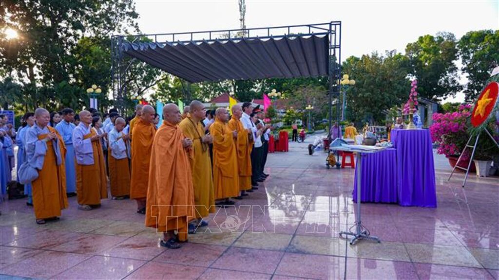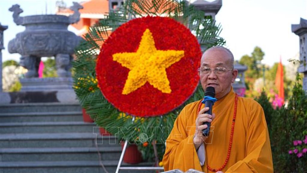 Các đại biểu cùng đông đảo tăng ni, phật tử, đoàn viên thanh niên và nhân dân đã dành phút mặc niệm tưởng nhớ anh linh các anh hùng liệt sĩ; dâng hoa, dâng hương tri ân những hy sinh to lớn của thế hệ đi trước vì sự nghiệp giải phóng dân tộc, thống nhất đất nước, bảo vệ biên cương Tổ quốc và làm nhiệm vụ quốc tế cao cả.