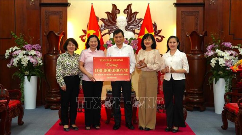Dịp này, Đoàn công tác của Tỉnh ủy Hải Dương đã trao tặng kinh phí 100 triệu đồng cho Quỹ đền ơn đáp nghĩa và Quỹ vì người nghèo tỉnh Tây Ninh./.