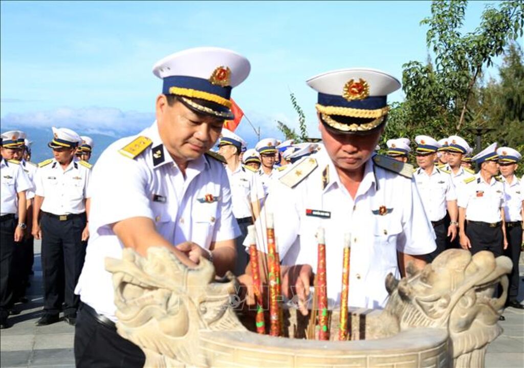 Tại đây, Đoàn công tác do Chuẩn Đô đốc Nguyễn Anh Tuấn – Tư lệnh Vùng 4 Hải quân và Thượng tá Bùi Xuân Bình – Chính ủy Vùng 4 Hải quân đồng chủ trì, đã tổ chức Lễ dâng hương tại Đài tưởng niệm Gạc Ma và Đài tưởng niệm liệt sĩ, tù chính trị Cam Ranh, bày tỏ lòng thành kính, tri ân sâu sắc đối với các Anh hùng liệt sĩ đã anh dũng hy sinh vì sự nghiệp bảo vệ chủ quyền biển, đảo thiêng liêng của Tổ quốc, đặc biệt là tại Trường Sa.