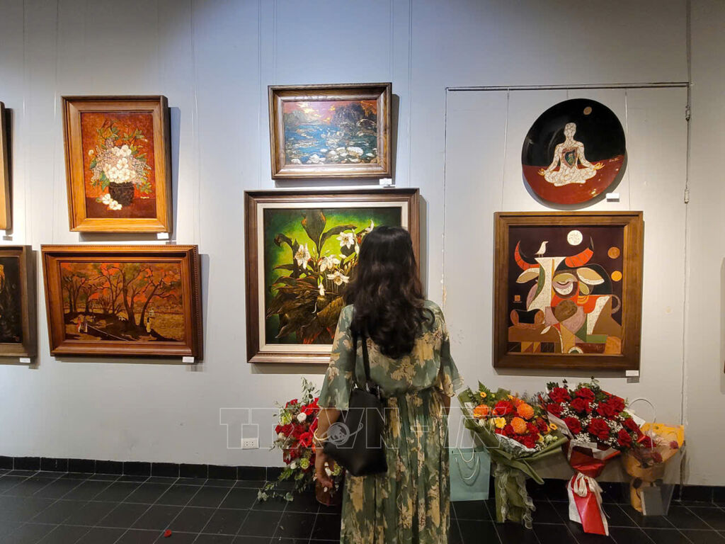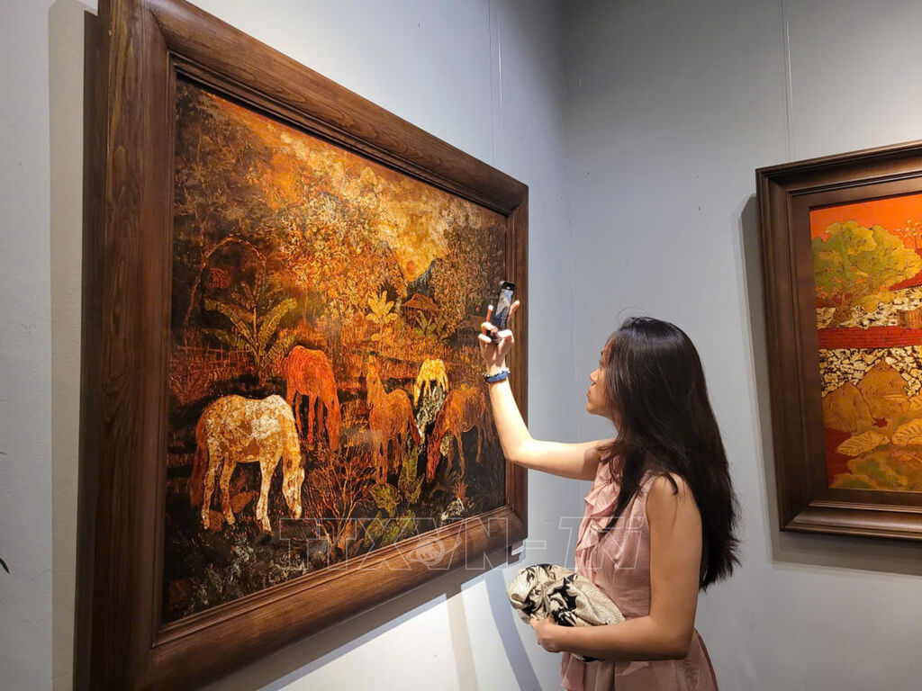 Theo họa sĩ, không gian triển lãm với khoảng 45 tác phẩm sơn mài thể hiện phong cách và chủ đề đa dạng từ thiên nhiên, phong cảnh đến con người, cuộc sống. Mỗi tác giả mang đến góc nhìn, cảm xúc và thẩm mỹ độc đáo, song tất cả đều hội tụ vẻ đẹp chung của sơn mài Việt Nam, từ màu sắc sâu lắng, bề mặt lấp lánh đến sự sang trọng, tinh tế mà không một chất liệu nào có thể thay thế được.