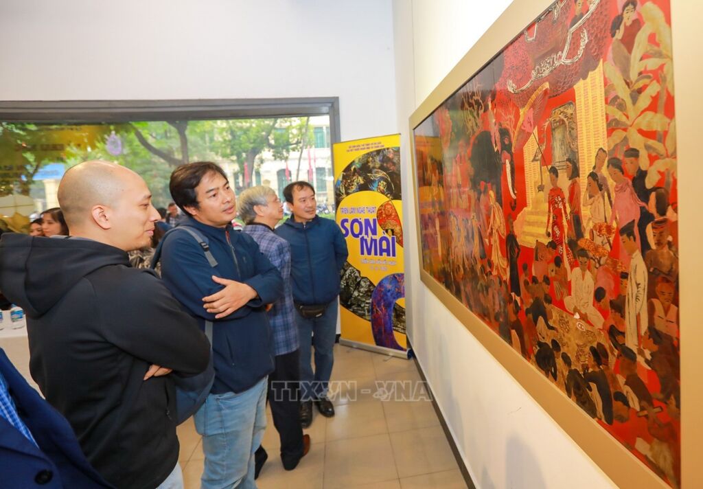 Triển lãm nghệ thuật sơn mài hướng tới chào mừng Đại hội Đảng toàn quốc lần thứ XIV giới thiệu 44 tác phẩm hội họa có giá trị nghệ thuật với nội dung chủ đề ca ngợi quê hương, đất nước… của các thế hệ họa sĩ gạo cội có nhiều cống hiến, dấu ấn cho sự phát triển mỹ thuật Việt Nam, như: Tác phẩm “Phong cảnh Hòa Bình” của họa sĩ Nguyễn Văn Bình; “Bác Hồ với thiếu nhi” của họa sĩ Nguyễn Nghĩa Duyên; “Ải Chi Lăng” của họa sĩ Lê Quốc Lộc; “Sau giờ lao động” của họa sĩ Lò An Quang; “Đường vào hang Pắc Bó” của họa sĩ Trần Đình Thọ; “Thuyền Hạ Long” của họa sĩ Nguyễn Văn Tỵ; “Bán đảo” của họa sĩ Đoàn Văn Nguyên.