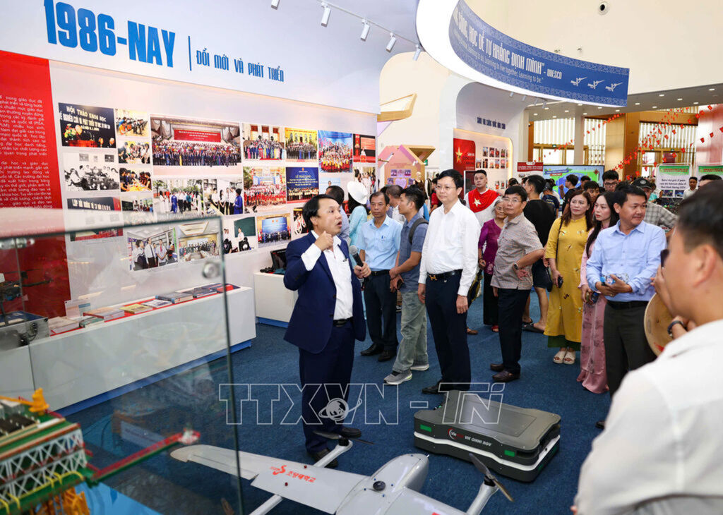 Với diện tích 396m², gian triển lãm được thiết kế hiện đại, ứng dụng công nghệ số, công nghệ tương tác, phản ánh trung thực, sinh động hành trình phát triển của nền giáo dục cách mạng Việt Nam qua 6 giai đoạn lịch sử: Từ phong trào “Diệt giặc dốt” (1945–1954), các lần cải cách giáo dục đến công cuộc đổi mới căn bản, toàn diện giáo dục và đào tạo hiện nay.
