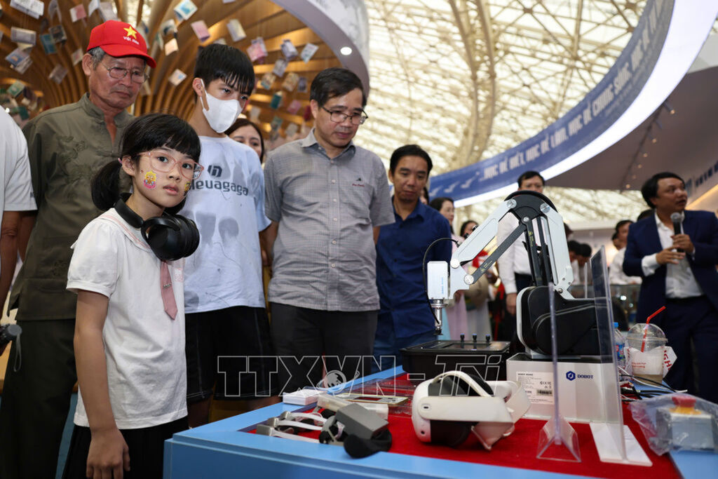 Trong khuôn khổ Triển lãm thành tựu đất nước “80 năm hành trình Độc lập - Tự do - Hạnh phúc” diễn ra từ 28/8 đến 5/9/2025, tại Trung tâm Hội chợ Triển lãm Quốc gia (Đông Anh, Hà Nội), gian trưng bày của Bộ Giáo dục và Đào tạo với chủ đề “80 năm Giáo dục và Đào tạo phát triển đất nước” đã thu hút sự quan tâm của đông đảo người dân.