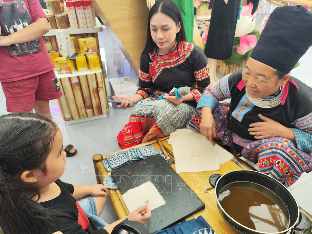 Nghệ nhân dân gian Mùa Y Bía (dân tộc Mông, xã Pà Cò, tỉnh Phú Thọ) tham gia trình diễn vẽ sáp ong trên thổ cẩm tại khu trưng bày của Bộ Dân tộc và Tôn giáo. Bà Mùa Y Bía coi đây là cơ hội để giới thiệu nghệ thuật truyền thống giàu bản sắc của dân tộc Mông đến với người dân cả nước và du khách quốc tế. Nhiều du khách cũng đã tới và trải nghiệm quá trình vẽ sáp ong trên thổ cẩm và được bà Bía dành tặng một tấm khăn tay vẽ họa tiết sáp ong như một cách lưu giữ những kỷ niệm khi đến thăm Triển lãm.