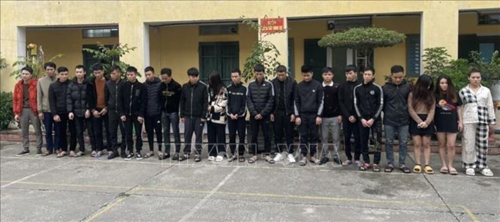 Các đối tượng gồm: Trần Việt Bắc (sinh năm 1993), Trần Đình Hoàng (sinh năm 1990), cùng trú tại xã Xuân Giang, huyện Nghi Xuân, tỉnh Hà Tĩnh; Nguyễn Thị Tuyết (sinh năm 1999, trú tại xã Tân Thành, huyện Yên Thành, tỉnh Nghệ An; Nguyễn Thu Trà (sinh năm 2002, trú tại xã Minh Đức, huyện Ứng Hòa, Hà Nội); Trịnh Đức Thắng (sinh năm 1999), Phạm Văn Đối (sinh năm 1990), cùng trú tại xã Minh Tân, huyện Phú Xuyên, Hà Nội; Hoàng Xuân Lâm (sinh năm 2000), Nguyễn Văn Nam (sinh năm 1999), cùng trú tại xã Trung Tú, huyện Ứng Hòa, Hà Nội;