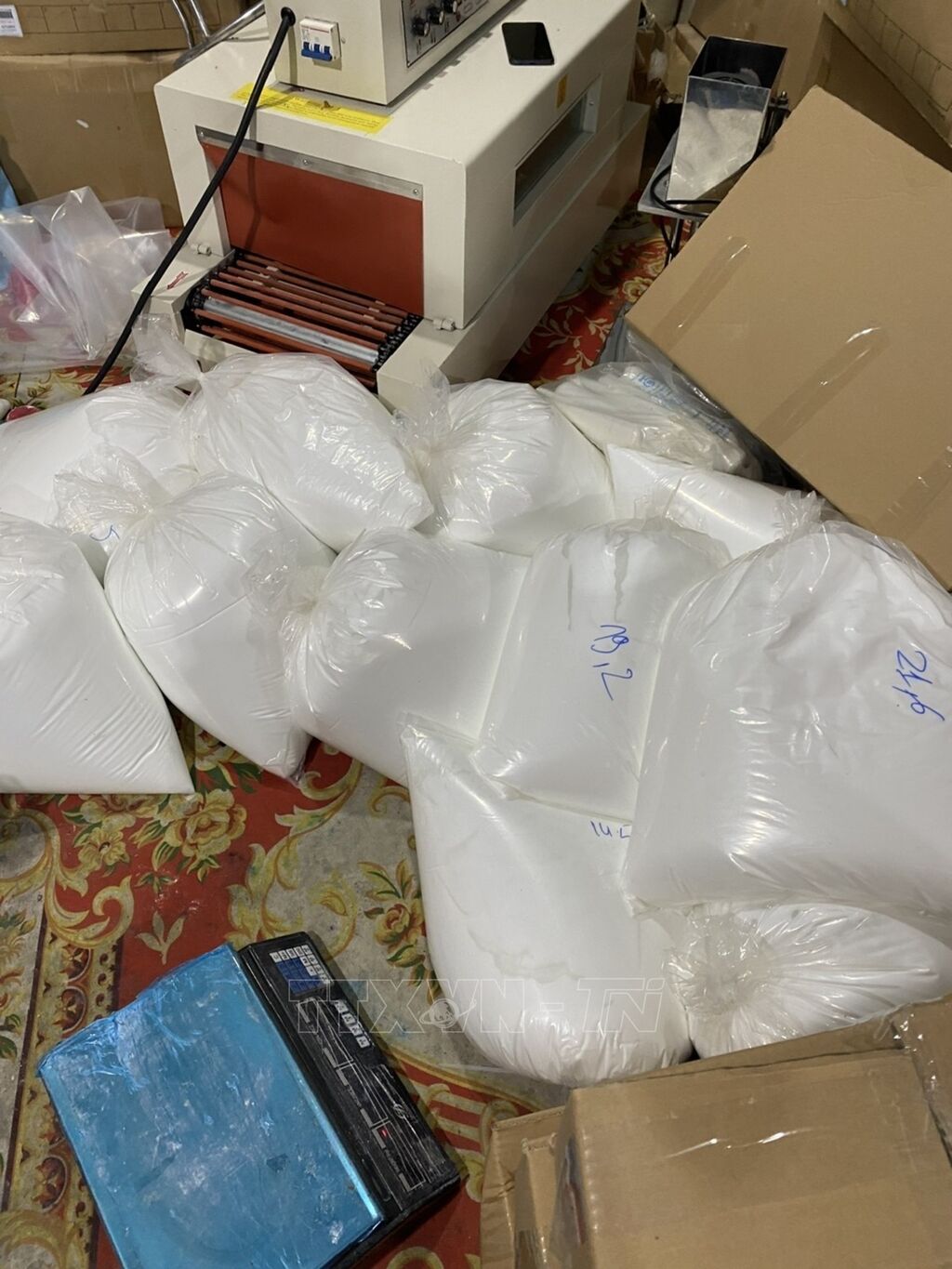 Thực hiện kế hoạch phá án, nhiều tổ công tác của Phòng Cảnh sát kinh tế đã đồng loạt triển khai khám xét 3 địa điểm gồm 2 cơ sở sản xuất và 1 kho hàng. Tại hiện trường, lực lượng công an thu giữ hàng ngàn sản phẩm mỹ phẩm giả mang các thương hiệu nổi tiếng như Vichy, My Gold Korea Red Ginseng… cùng nhiều máy móc, thiết bị, nguyên liệu và vật tư phục vụ sản xuất hàng giả. Số hàng giả được xác định có giá trị tương đương hàng thật lên đến nhiều tỷ đồng.