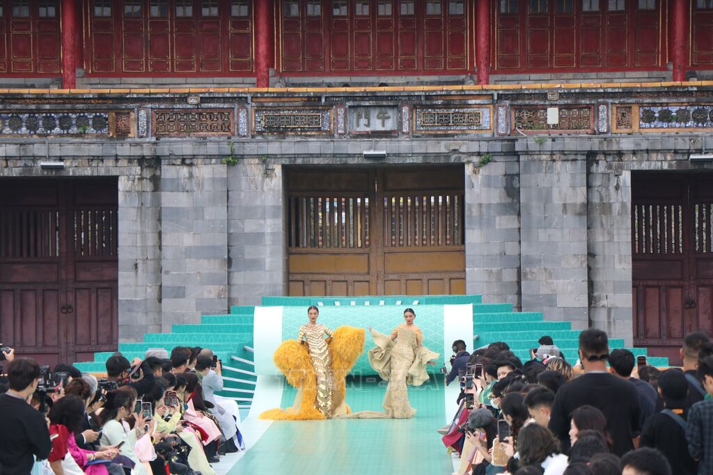 Buổi trình diễn giới thiệu Bộ sưu tập LE THANH HOA FALL-WINTER 2025 tạo ra dòng chảy văn hóa giao hòa quyện cùng vẻ đẹp thiên nhiên hùng vĩ. Bộ sưu tập được lấy cảm hứng từ chính vùng đất giàu giá trị, vẻ đẹp Huế, để tái hiện trong từng chi tiết trang phục qua draping (kỹ thuật tạo hình trang phục ba chiều trên ma-nơ-canh), mềm mại, mảng thêu tinh xảo cùng kỹ thuật đính kết và xử lý chất liệu hiện đại. Bảng màu mang hơi thở trầm mặc của cố đô: vàng son, đỏ ngọc, xanh rêu, nâu gỗ, ánh ngọc trai và đen huyền, gói trọn những lớp ký ức đan xen giữa lộng lẫy và u hoài. Bộ sưu tập vừa là hành trình sáng tạo, vừa là lời tri ân gửi đến Huế, lan tỏa tinh thần kiên cường, lòng nhân ái và niềm tự hào dân tộc đến bạn bè quốc tế.