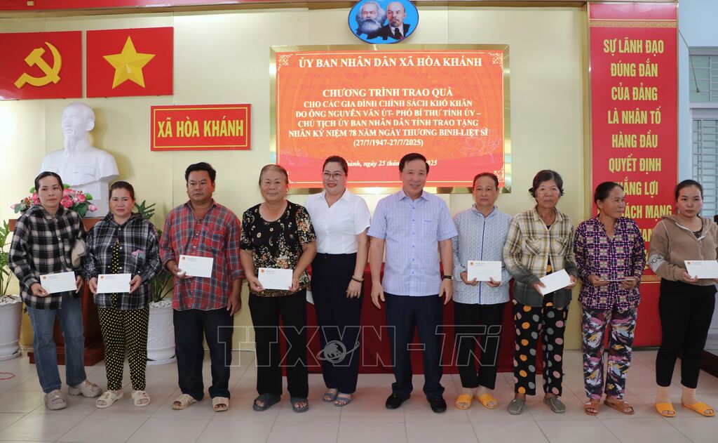 * Chiều 25/7, Phó Bí thư Tỉnh ủy, Chủ tịch UBND tỉnh Tây Ninh Nguyễn Văn Út cũng thăm, tặng quà các gia đình chính sách, hộ có hoàn cảnh khó khăn trên địa bàn xã Hòa Khánh.