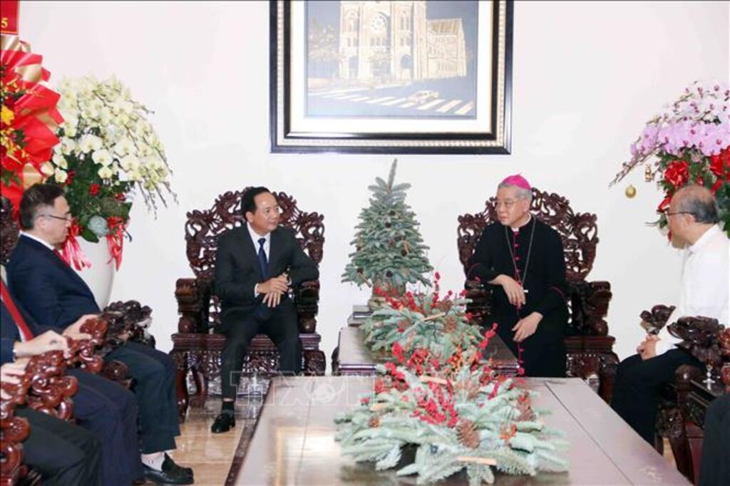 Tại Tòa Tổng Giám mục Tổng Giáo phận Thành phố Hồ Chí Minh, Trưởng Ban Tuyên giáo và Dân vận Trung ương Trịnh Văn Quyết gửi lời chúc mùa Giáng sinh an lành, hạnh phúc đến với Đức Tổng Giám mục Nguyễn Năng, các linh mục, tu sỹ và đồng bào Công giáo; cảm ơn sự đóng góp tích cực của đồng bào Công giáo đã đồng hành, ủng hộ các đường lối, chủ trương, chính sách của Đảng, Nhà nước trong phát triển kinh tế-xã hội, thực hiện công tác an sinh, hỗ trợ đồng bào bị hậu quả thiên tai, bão lũ trong năm 2025.