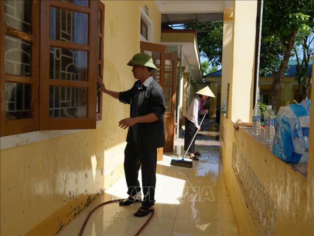Cụ thể, hơn 1.000 cán bộ, giáo viên trẻ từ các trường trung học phổ thông được huy động tình nguyện đến các điểm trường miền núi, phối hợp với bộ đội, công an, dân quân và người dân để nạo vét bùn đất, chỉnh trang trường lớp, trạm y tế, đường giao thông thôn bản, giúp người dân lau dọn đồ dùng, nhà cửa.