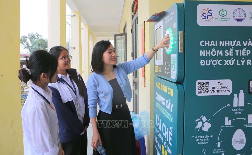Trường THPT Mạc Đĩnh Chi là một trong những điểm đầu tiên của cả nước đặt máy kiểm đến khí thải carbon. Hàng ngày, thày, cô giáo và gần 1.900 học sinh của nhà trường sẽ gom nhặt vỏ chai nhựa, lon bia, nước ngọt từ gia đình, khu dân cư, cộng đồng sau đó mang đến trường để cho vào máy kiểm đếm này. Mỗi một vỏ chai, vỏ lon đưa vào máy được quy đổi thành lượng tín chỉ carbon. Khi máy chấm điểm xong, người cho rác tái chế sẽ quét mã QR định danh của từng cá nhân qua phần mềm VnNetzero. Phần mềm này lưu trữ toàn bộ số điểm carbon của người tích lũy. Điểm đặc biệt là, điểm tích lũy carbon của từng cá nhân sẽ kết nối với những người tham gia chương trình tại tất cả các điểm cầu đặt máy này trên địa bàn cả nước. Những cá nhân, đơn vị có điểm cao nhất sẽ hiển thị lên trang chủ của phần mềm. Tại trường THPT Mạc Đĩnh Chi, Ban lãnh đạo nhà trường hàng tháng đều động viên, khích lệ, biểu dương tặng giấy chứng nhận cho các tập thể và cá nhân có thành tích xuất sắc trong việc xây dựng trường học sinh thái.