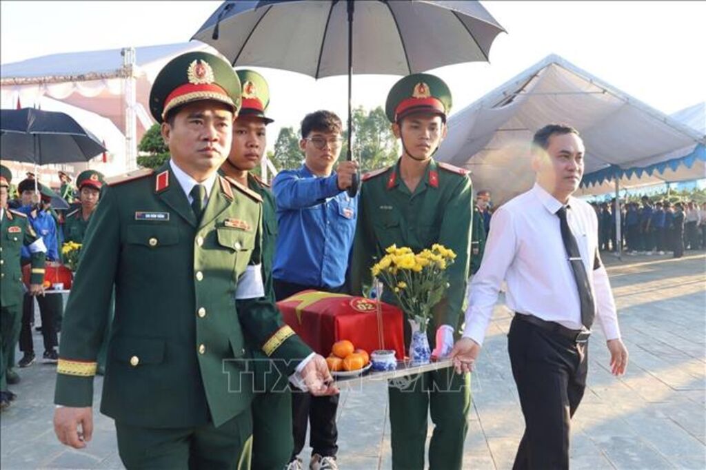 Ngay sau lễ truy điệu, các đại biểu thực hiện nghi thức di quách, tiễn đưa các liệt sĩ về an nghỉ trong lòng đất mẹ./.