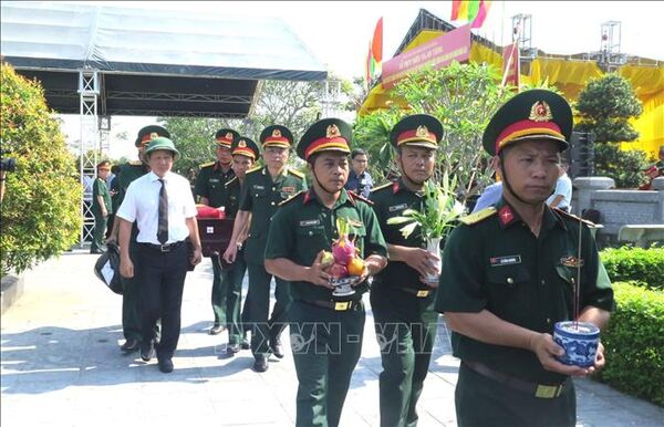 TTXVN - Ngày 25/5, tại Nghĩa trang Liệt sỹ quốc tế Đồng Tâm (huyện Bá Thước), Tỉnh ủy, HĐND, UBND, Ủy ban MTTQ Việt Nam tỉnh Thanh Hóa đã tổ chức Lễ truy điệu, an táng 16 hài cốt liệt sỹ quân tình nguyện, chuyên gia Việt Nam hy sinh tại Lào, đã quy tập được trong mùa khô năm 2022 - 2023.