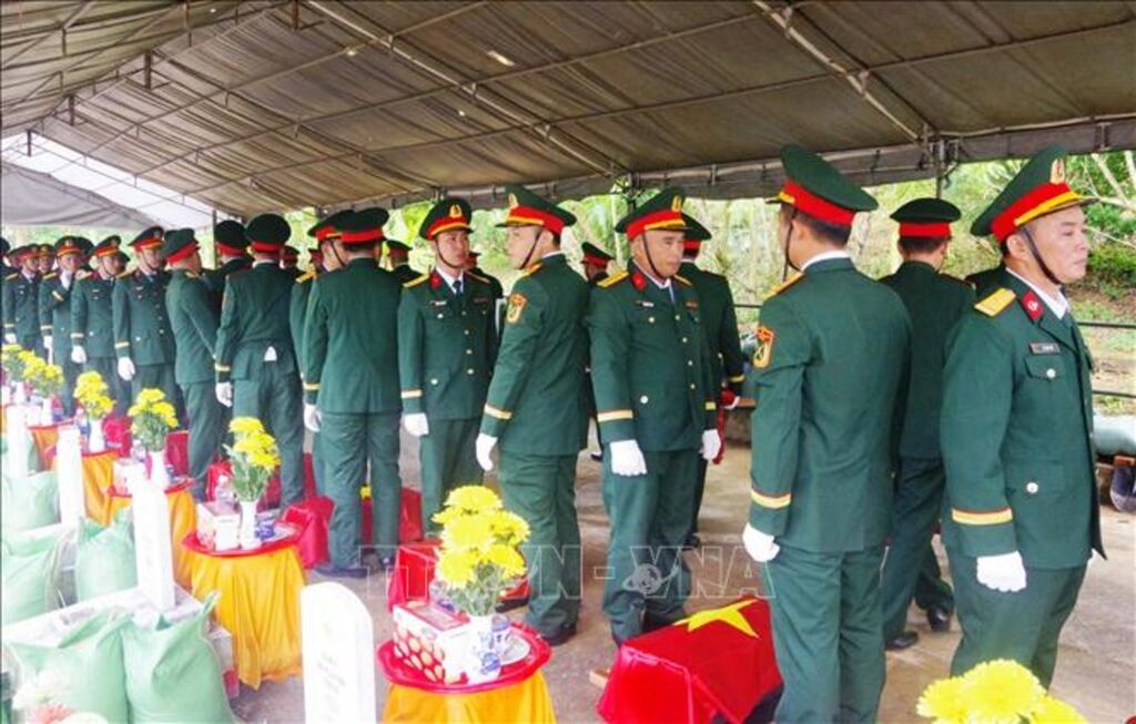 Sau buổi lễ, 14 hài cốt liệt sĩ đã được cấp ủy, chính quyền và lực lượng vũ trang địa phương tổ chức an táng tại Nghĩa trang Liệt sĩ xã Khe Sanh, tỉnh Quảng Trị./.