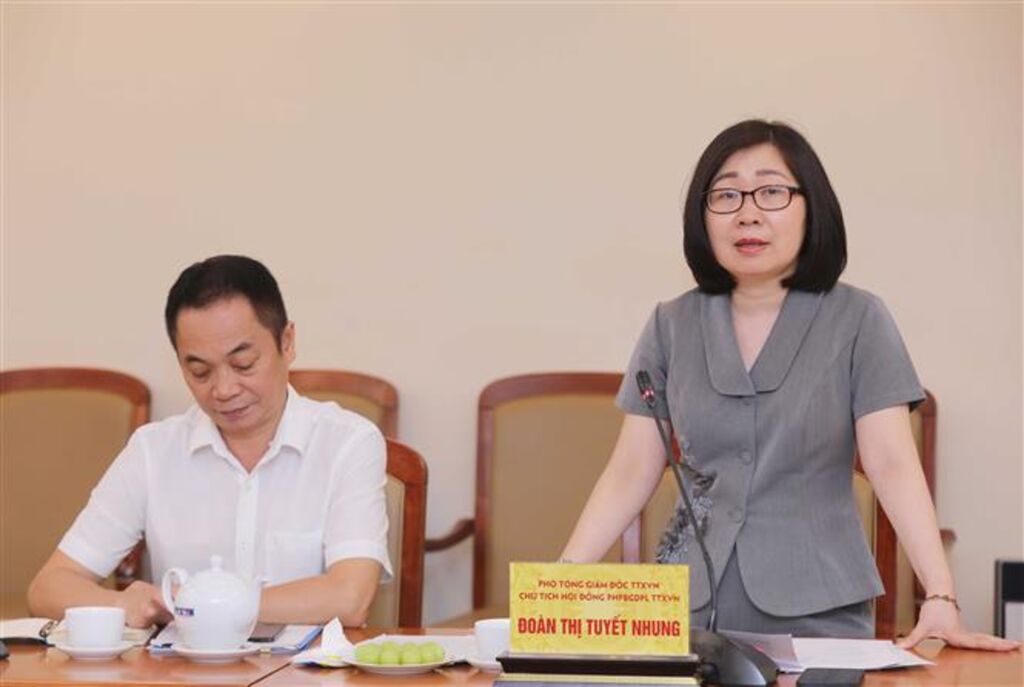 Tại buổi làm việc, Chủ tịch Hội đồng Phối hợp phổ biến, giáo dục pháp luật TTXVN, Phó Tổng Giám đốc TTXVN Đoàn Thị Tuyết Nhung khẳng định, TTXVN tiếp tục bám sát các chỉ đạo của Hội đồng Phối hợp phổ biến, giáo dục pháp luật Trung ương để thực hiện tốt công tác phổ biến, giáo dục pháp luật, chỉ đạo các đơn vị triển khai hiệu quả công tác truyền thông chính sách và thực hiện Nghị quyết số 66-NQ/TW bằng các loại hình thông tin với nhiều ngôn ngữ (Việt, Lào, Khmer, Anh, Pháp, Nga, Trung, Tây Ban Nha, Nhật, Hàn…) trên các kênh thông tin của TTXVN.