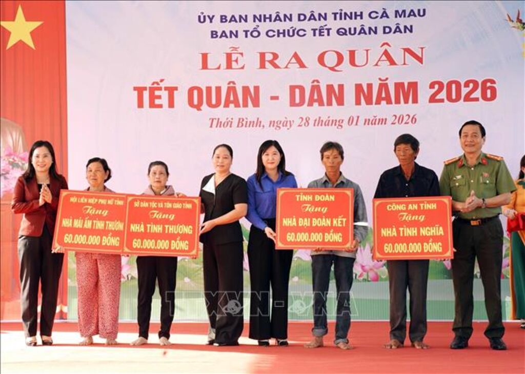Trong quý I năm 2026, nhất là trong dịp Tết Nguyên đán, Công an toàn tỉnh đã vận động, đóng góp, trao tặng hơn 8.200 phần quà; xây dựng, sửa chữa 7 căn nhà tình nghĩa… cho người có uy tín, người dân, học sinh, lực lượng tham gia bảo vệ an ninh trật tự ở cơ sở có hoàn cảnh khó khăn với tổng giá trị trên 5,5 tỷ đồng; đóng góp hỗ trợ nhân dân có hoàn cảnh khó khăn trên địa bàn nhân dịp Tết Nguyên đán Bính Ngọ năm 2026, thực hiện các công trình, phần việc Tết Quân - Dân năm 2026 tại xã Thới Bình với tổng giá trị trên 4 tỷ đồng.