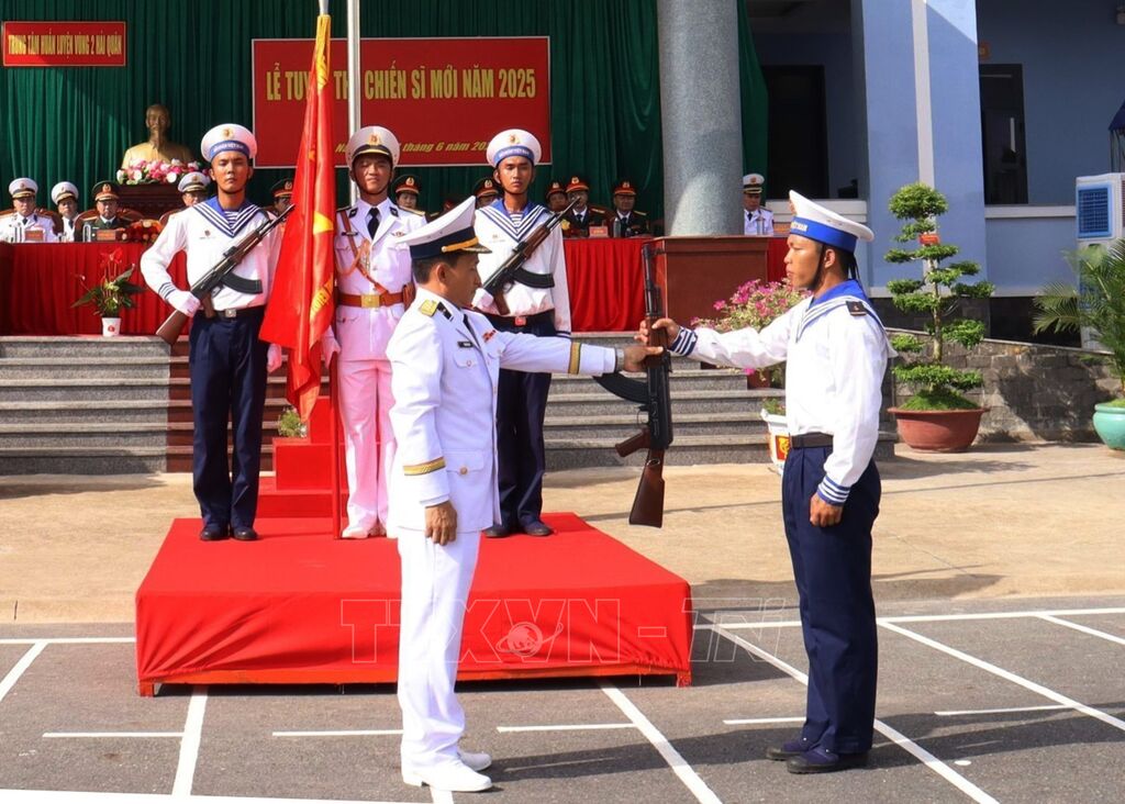 Tại tỉnh Khánh Hòa, các đơn vị huấn luyện chiến sĩ mới thuộc Vùng 4 Hải quân tổ chức Lễ tuyên thệ chiến sĩ mới.