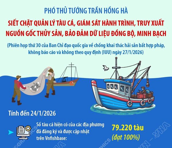 • Phó Thủ tướng Trần Hồng Hà: Siết chặt quản lý tàu cá, giám sát hành trình, truy xuất nguồn gốc thủy sản, bảo đảm dữ liệu đồng bộ, minh bạch