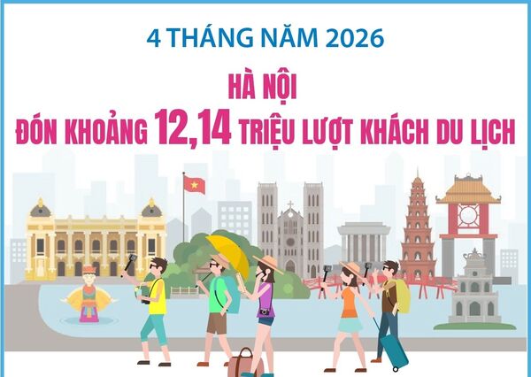 4 tháng năm 2026: Hà Nội đón khoảng 12,14 triệu lượt khách du lịch