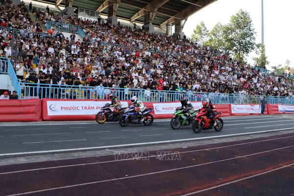 • Các vận động viên tranh tài ở Giải đua xe mô tô sân tròn cúp vô địch quốc gia