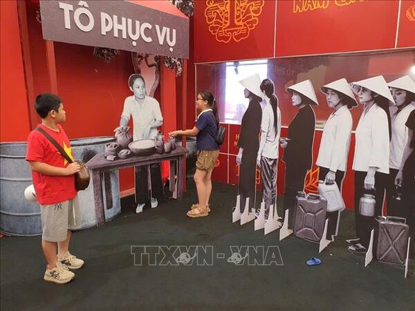 Du khách thích thú với hình ảnh tái hiện thời bao cấp tại Triển lãm thành tựu đất nước