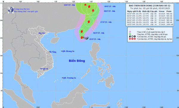 Khu vực Bắc Biển Đông (bao gồm đặc khu Hoàng Sa) có mưa bão; khu vực Giữa và Nam Biển Đông (bao gồm đặc khu Trường Sa), vùng biển từ Gia Lai đến Cà Mau, từ Cà Mau đến An Giang và vịnh Thái Lan có mưa rào và dông rải rác.