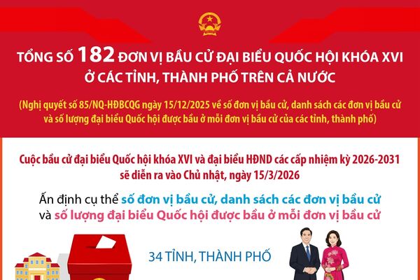 • Cả nước có 182 đơn vị bầu cử đại biểu Quốc hội khóa XVI