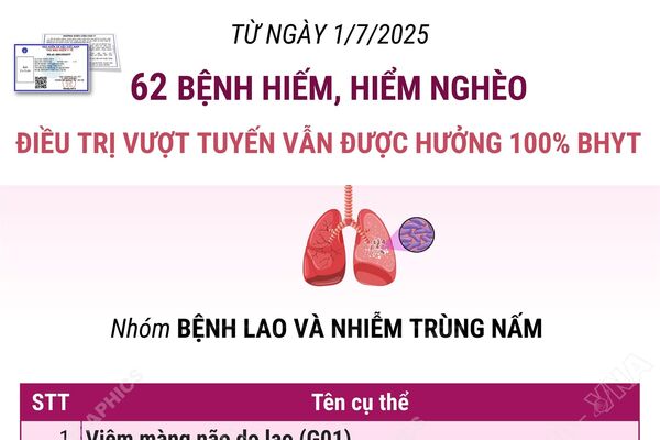 62 bệnh hiếm, hiểm nghèo điều trị vượt tuyến vẫn được hưởng 100% BHYT