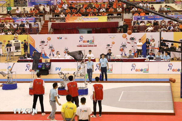 Tối 8/6, tại Nhà thi đấu Thể dục Thể thao tỉnh Ninh Bình, Đài Truyền hình Việt Nam phối hợp với UBND tỉnh Ninh Bình tổ chức lễ khai mạc Vòng Chung kết cuộc thi Sáng tạo Robot Việt Nam – Robocon 2025 chủ đề "Chiến binh bóng rổ". -