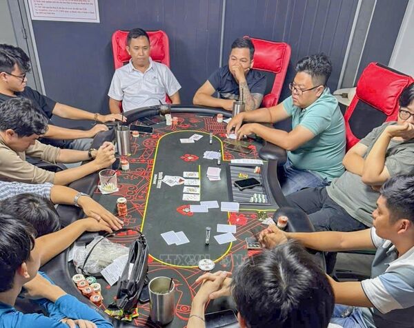 27/04/2025 19:56’ Các đối tượng khai nhận phương thức hoạt động là mua chip và chung chi thắng thua thông qua hình thức chuyển tiền qua tài khoản ngân hàng.