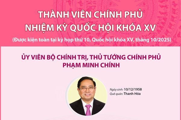 Thành viên Chính phủ nhiệm kỳ Quốc hội khóa XV (Được kiện toàn tại kỳ họp thứ 10, Quốc hội khóa XV, tháng 10/2025)