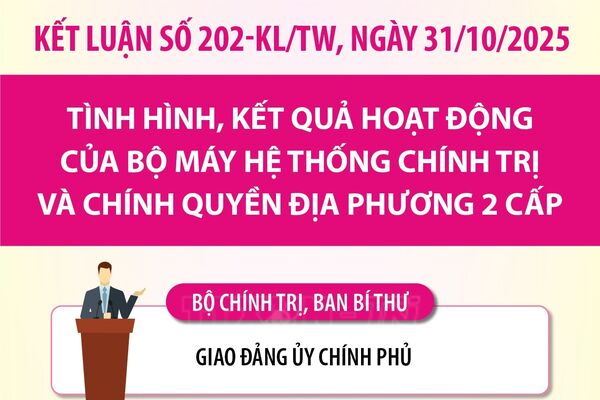 02/11/2025 10:20’ Bộ Chính trị, Ban Bí thư giao Đảng ủy Chính phủ Lãnh đạo, chỉ đạo các bộ, ngành: khẩn trương rà soát toàn bộ các văn bản quy phạm pháp luật của ngành, lĩnh vực