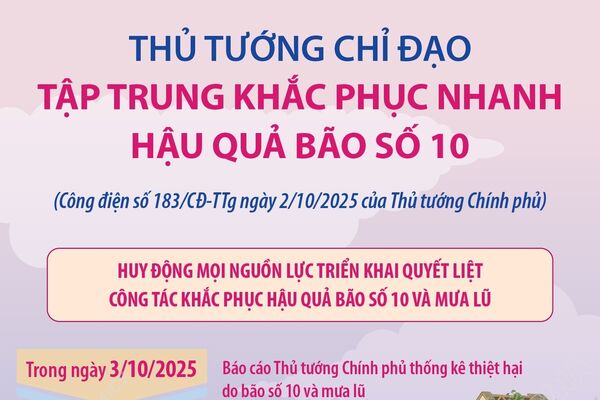 Để nhanh chóng khắc phục hậu quả, Thủ tướng Chính phủ Phạm Minh Chính ký Công điện số 183/CĐ-TTg ngày 2/10/2025 chỉ đạo các bộ ngành, địa phương tập trung khắc phục nhanh hậu quả bão số 10. -