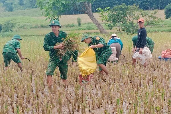 • Bộ đội Biên phòng giúp dân thu hoạch lúa trong mưa lũ