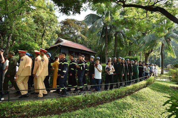 Lực lượng tham gia Lễ diễu binh, diễu hành Quốc khánh 2/9 tham quan Khu Di tích Chủ tịch Hồ Chí Minh tại Phủ Chủ tịch
