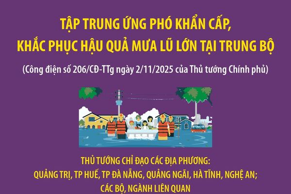 • Tập trung ứng phó khẩn cấp, khắc phục hậu quả mưa lũ lớn tại Trung Bộ