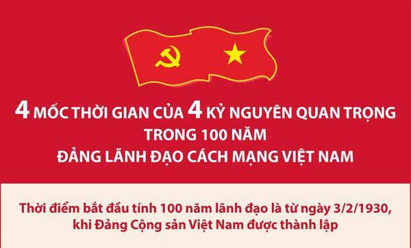 • 4 mốc thời gian của 4 kỷ nguyên quan trọng trong 100 năm Đảng lãnh đạo cách mạng Việt Nam