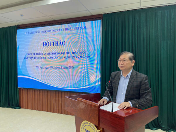 09/03/2026 12:18’ Các ý kiến góp ý tại hội thảo sẽ góp phần làm rõ hơn vai trò của đội ngũ trí thức khoa học và công nghệ, các tổ chức thành viên của Mặt trận Tổ quốc Việt Nam trong bối cảnh đất nước bước vào giai đoạn phát triển mới.