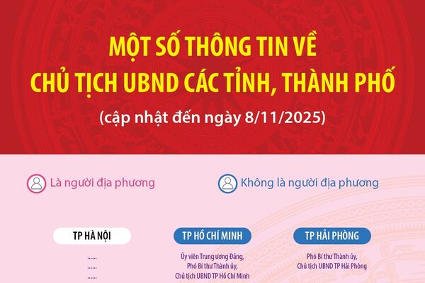 • Một số thông tin về Chủ tịch Ủy ban nhân dân các tỉnh, thành phố (cập nhật đến 8/11/2025)