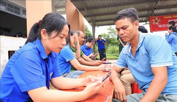 Ngay từ sáng sớm hàng trăm người dân xã Bù Đăng đã có mặt tại nhà văn hóa thôn để được hướng dẫn, giải quyết các thắc mắc liên quan đến nhiều lĩnh vực đất đai, các chính sách chế độ, khai sinh, khai tử, cập nhật VNeID… -