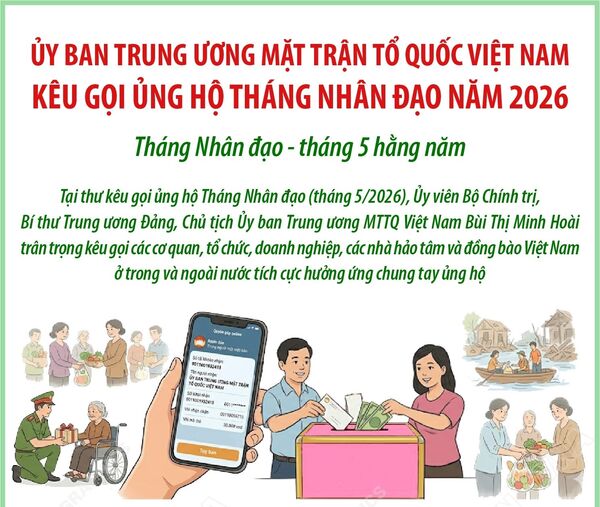 • Ủy ban Trung ương Mặt trận Tổ quốc Việt Nam kêu gọi ủng hộ Tháng Nhân đạo năm 2026