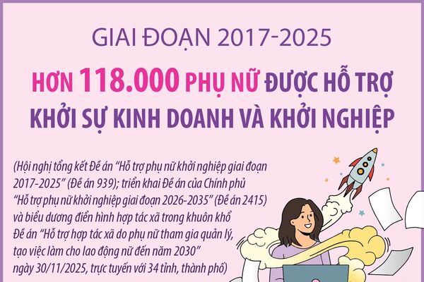 • Giai đoạn 2017-2025: Hơn 118.000 phụ nữ được hỗ trợ khởi sự kinh doanh và khởi nghiệp